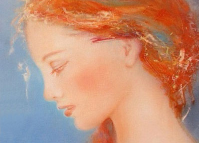 Poétiquement, on pourrait écrire qu’elle cherche, par la peinture, à dire le cœur fidèle dans la passée des jours, ou encore qu’elle peint comme on murmure à l’oreille de ceux qu’on aime. Le tout d’une main légère, qu’une exigence profonde éloigne des effets faciles, invitant sur sa palette une floraison de bleus, d’ocres ou de saumons pour ses marines ou scènes exotiques, à moins qu’elle ne préfère décliner une gamme tout aussi douce mais plus élargie pour ses figures. Notre œil est surpris parfois lorsque s’en viennent exploser, aux avant-plans d’une toile, des fulgurances chromatiques inattendues ; mais qui reprocherait aux demeures baignées de paix et de silence de laisser soudain leurs baies éclater d’éblouissantes musiques, qui oserait interdire aux petites fées de nos enfances de danser en chantant sur la lande du souvenir dans un rayon d’insolente lumière ?